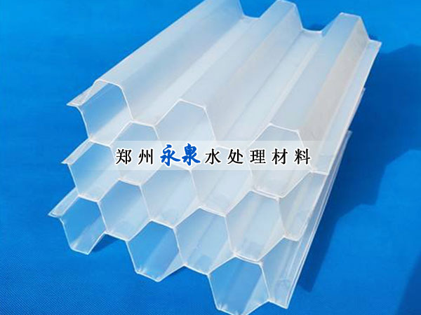 六角形蜂窩填料材質(zhì)有聚丙烯(PP)聚氯乙烯(PVC)乙丙共聚和玻璃鋼(FRP)四種。組裝形式的斜管和直管兩種形式。